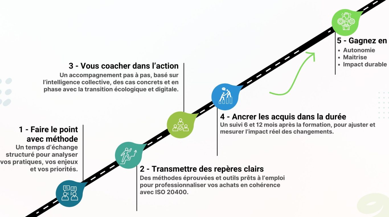 Des bénéfices tangibles, visibles rapidement : Les échanges internes gagnent en fluidité, les procédures sont mieux maîtrisées, vous montez en compétence avec assurance, et les décisions achats deviennent plus sereines, plus alignées… et plus responsables, en intégrant progressivement les enjeux sociaux, environnementaux et éthiques.